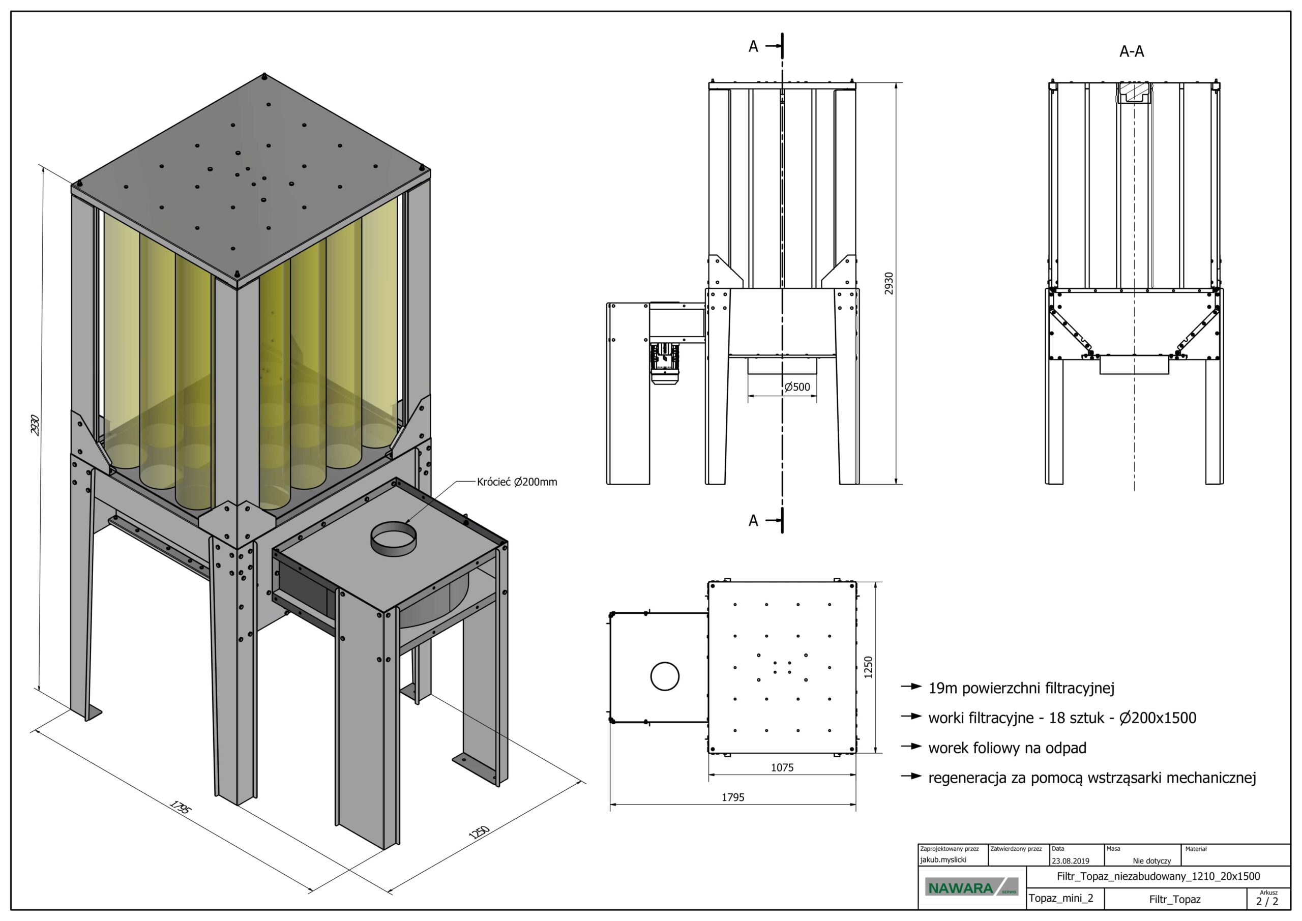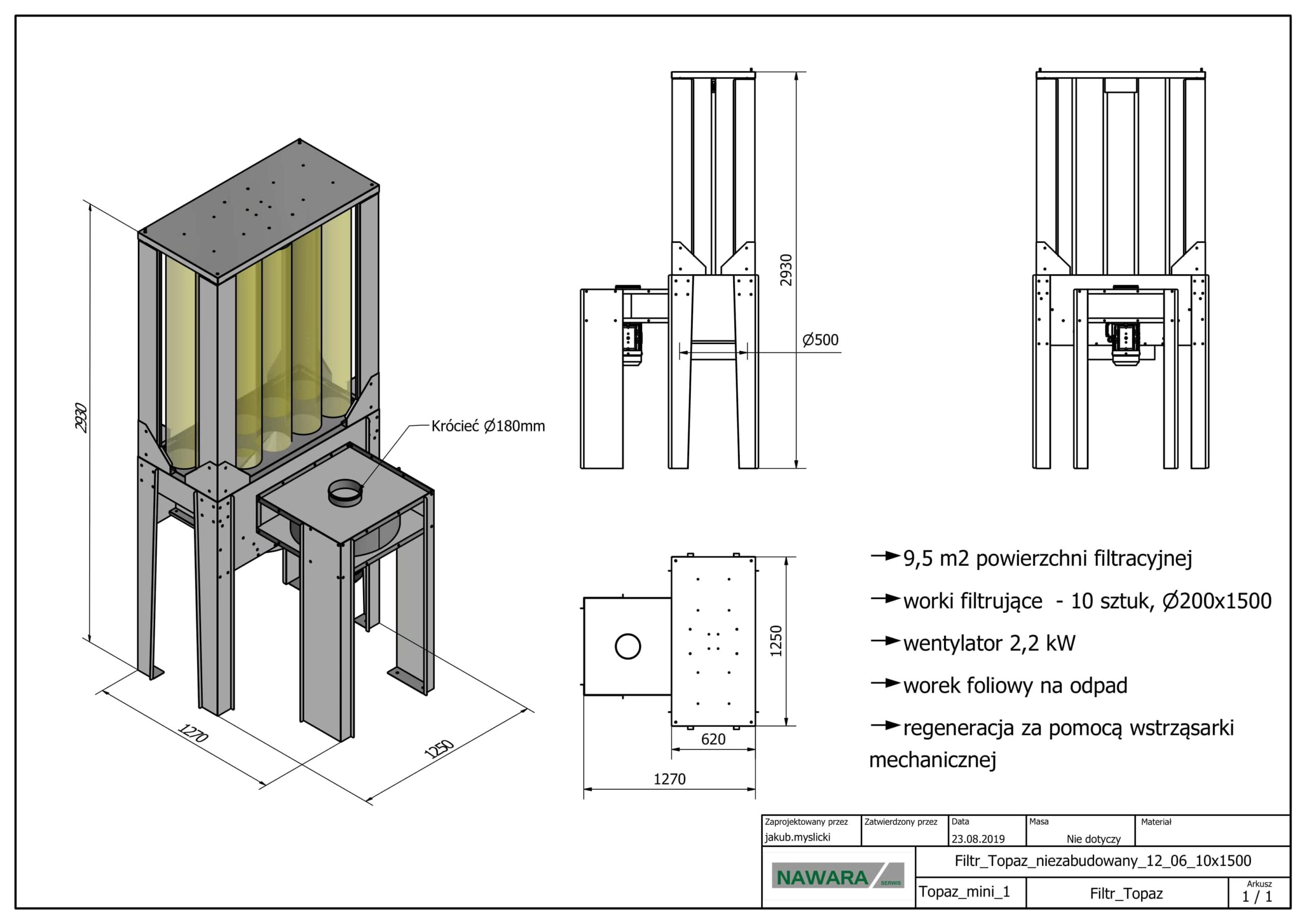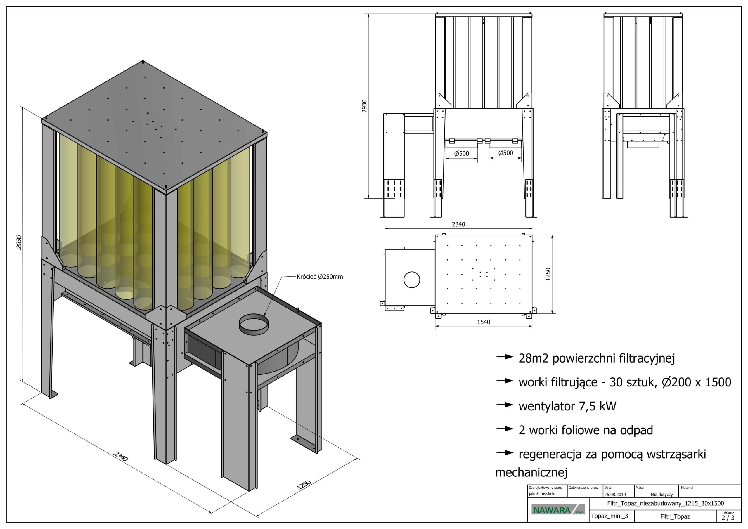 | Model | Wydajność [m3/h] l | Króciec [fi] | Regeneracja | Powierzchnia filtracji [m2] | Moc wentylatora [kW] |