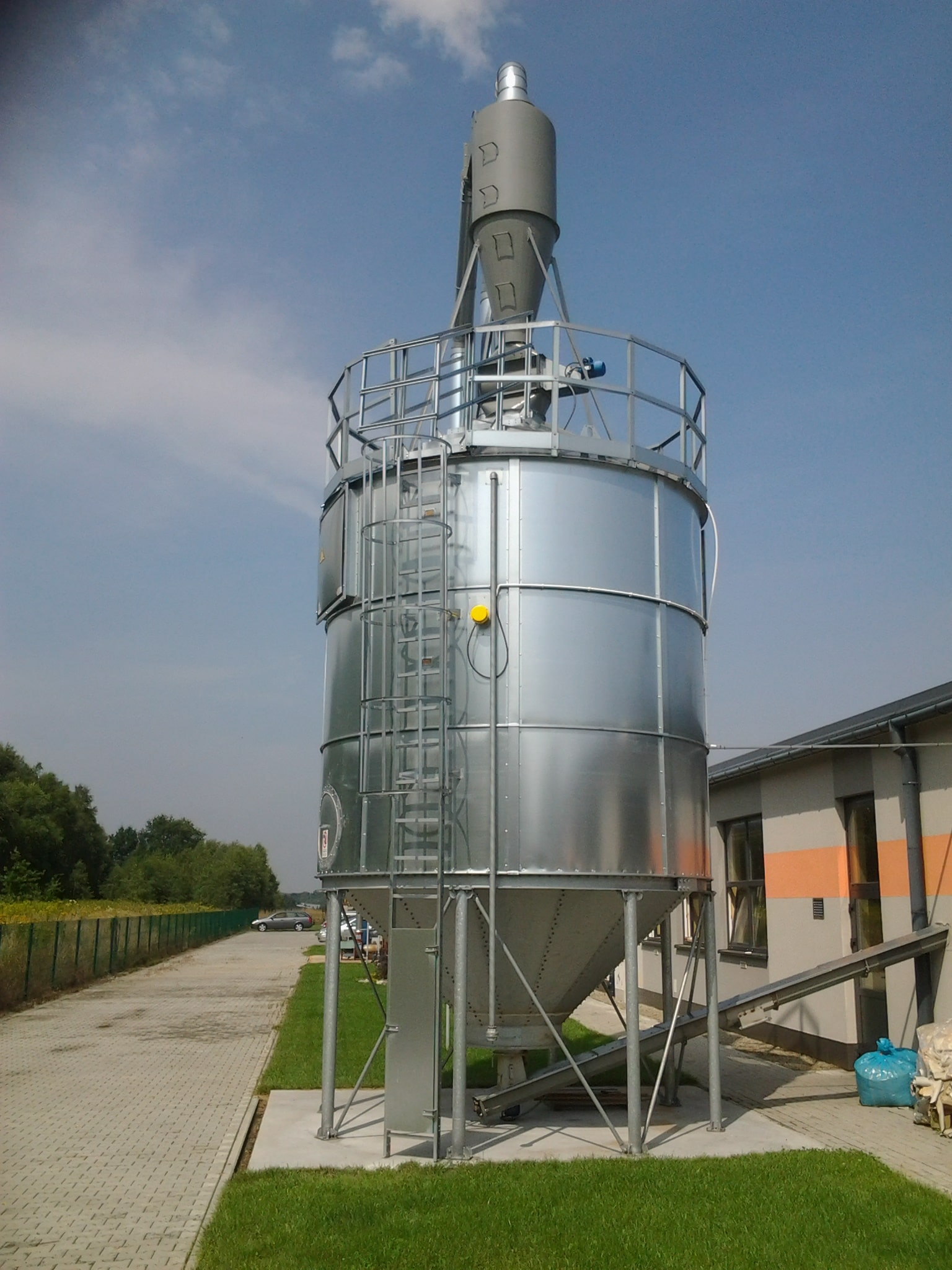 Silos przeznaczony jest do magazynowania trocin i pyłu zrębków na otwartej przestrzeni. Dzięki lejkowi zewnętrznemu i konstrukcji na nogach umożliwia pełne opróżnienie zbiornika, eliminując ryzyko gnicia i zamarzania materiału.