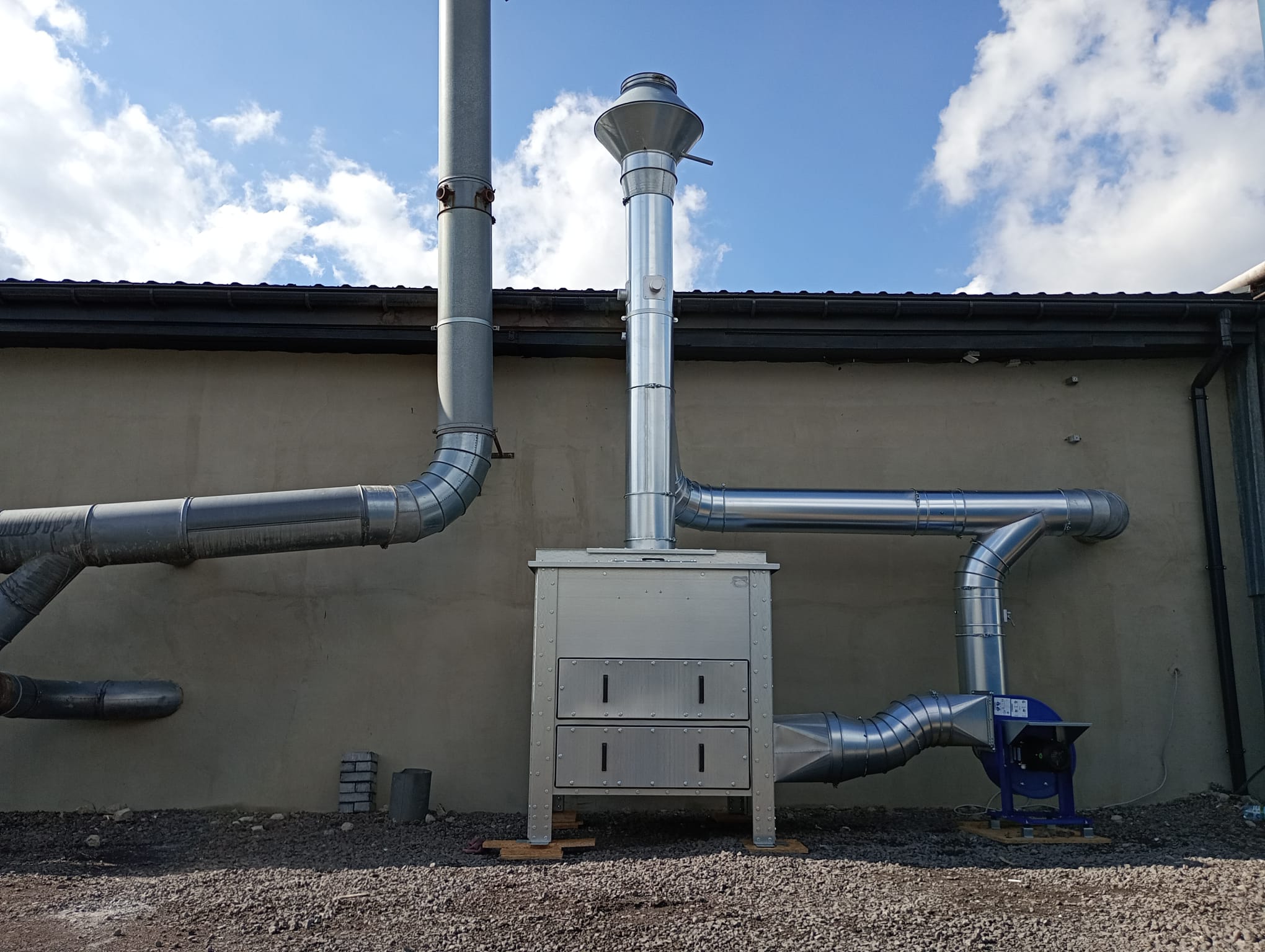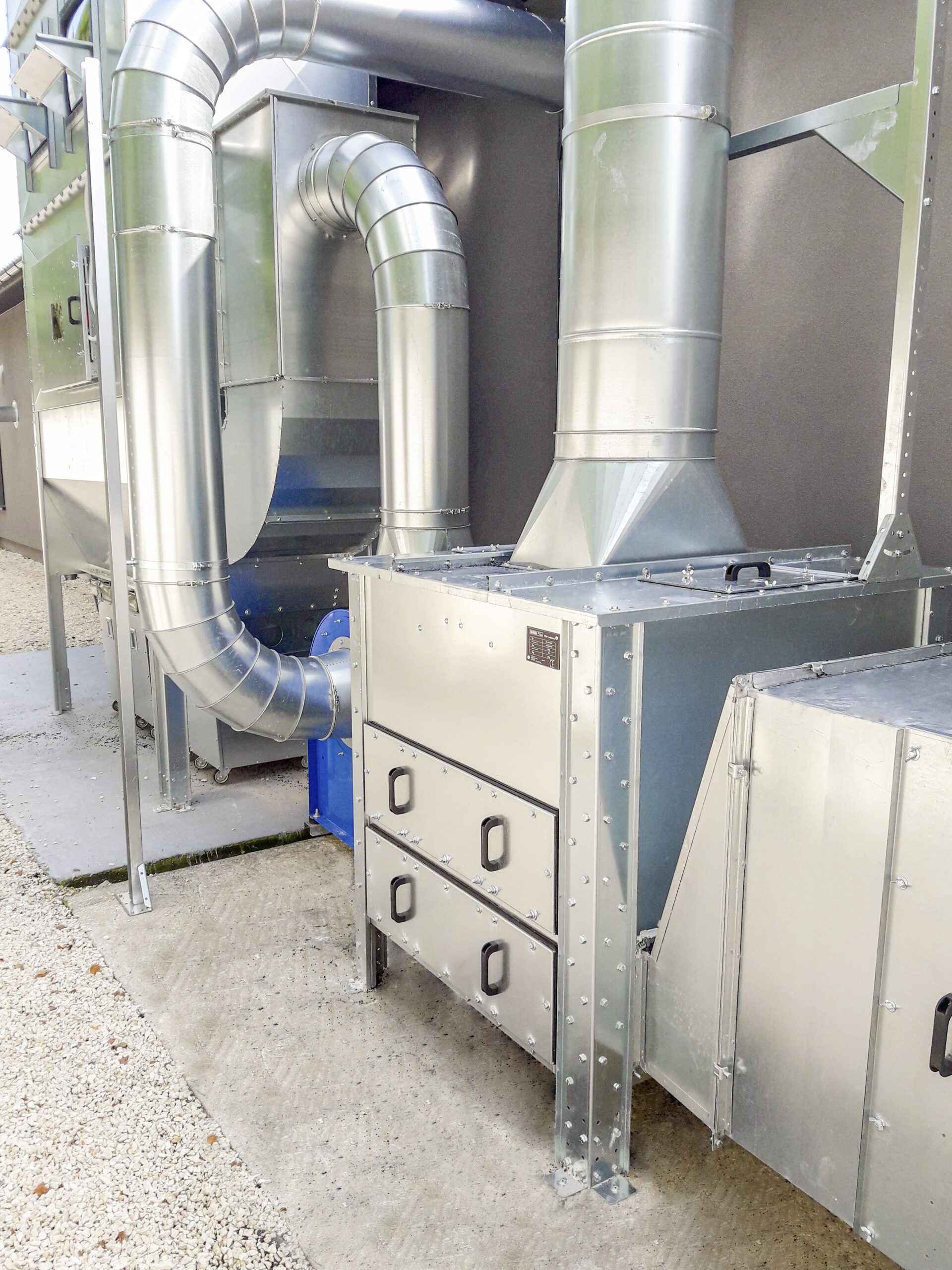 System filtracji usuwa cząstki stałe i lotne, a przefiltrowane powietrze spełnia normy czystości przemysłowej. Konstrukcja filtrów umożliwia ich regenerację i łatwą rozbudowę. Urządzenia są zgodne z normami ATEX i mogą być wyposażone w systemy przeciwwybuchowe oraz gaszenia iskier.