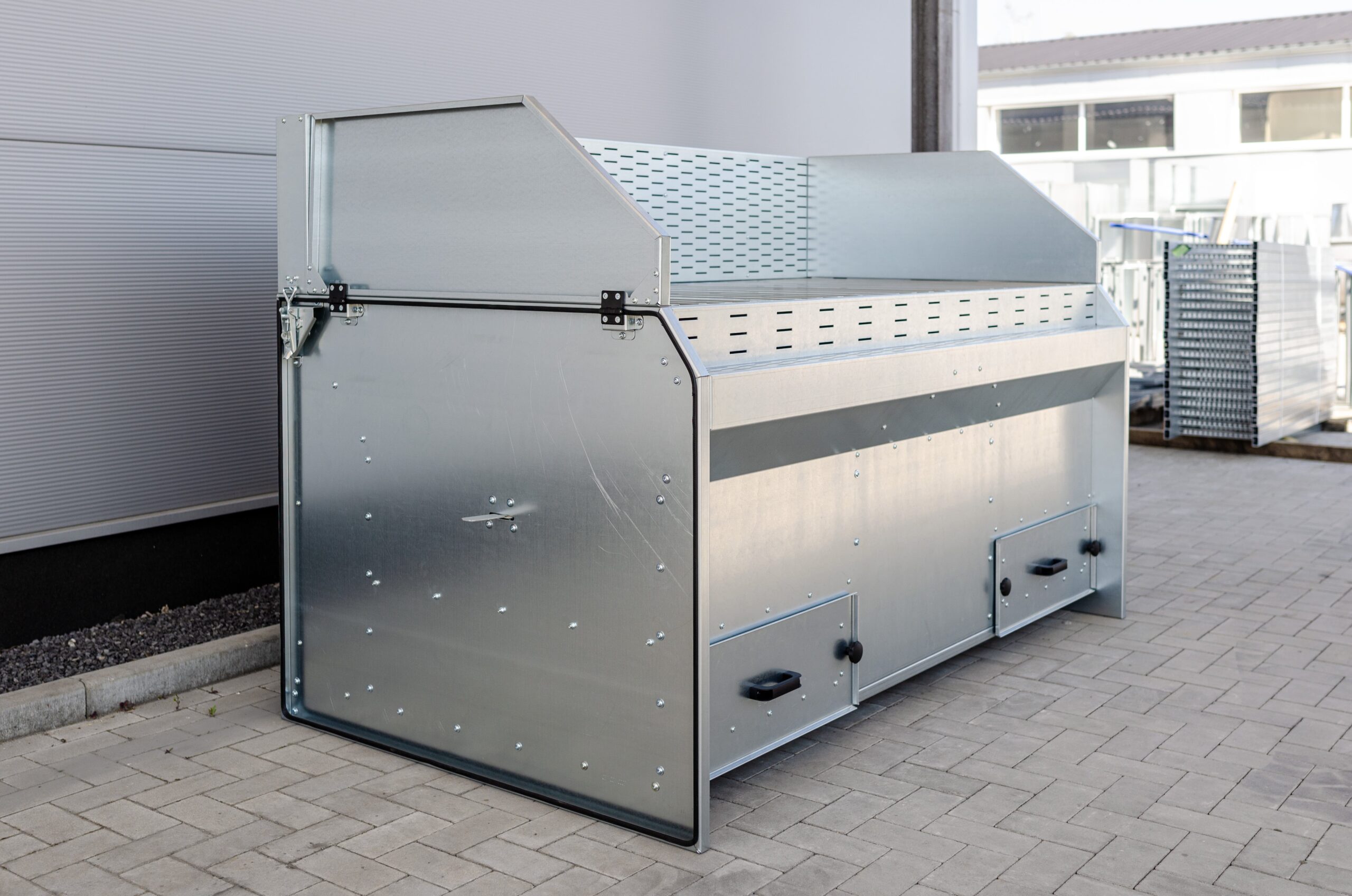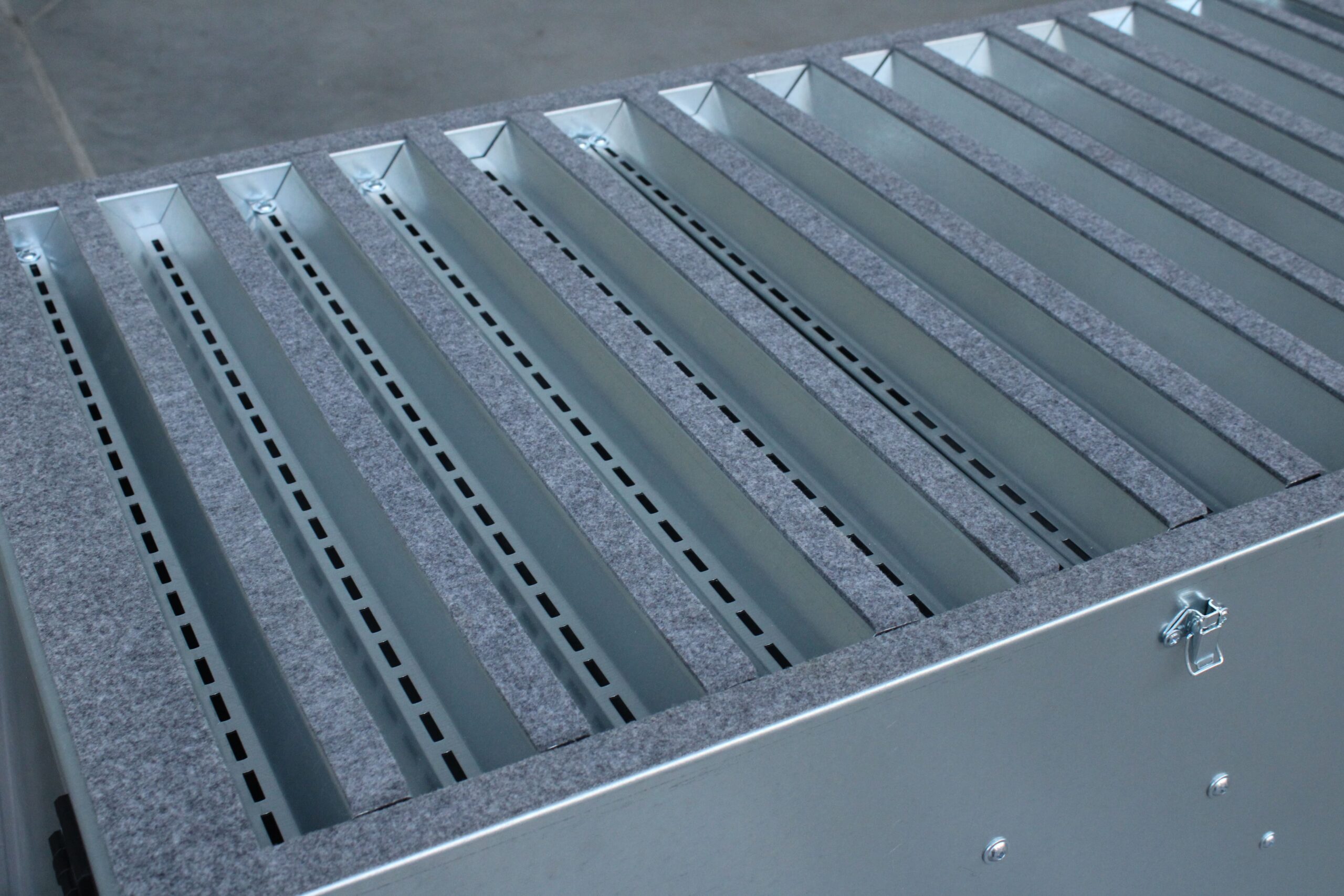 System budowany jest z modułów 1×1 m, co pozwala na dopasowanie do układu pomieszczenia i profilu produkcji. Przy dużej różnorodności elementów możliwe jest stosowanie sekcji dołączanych w razie potrzeby.